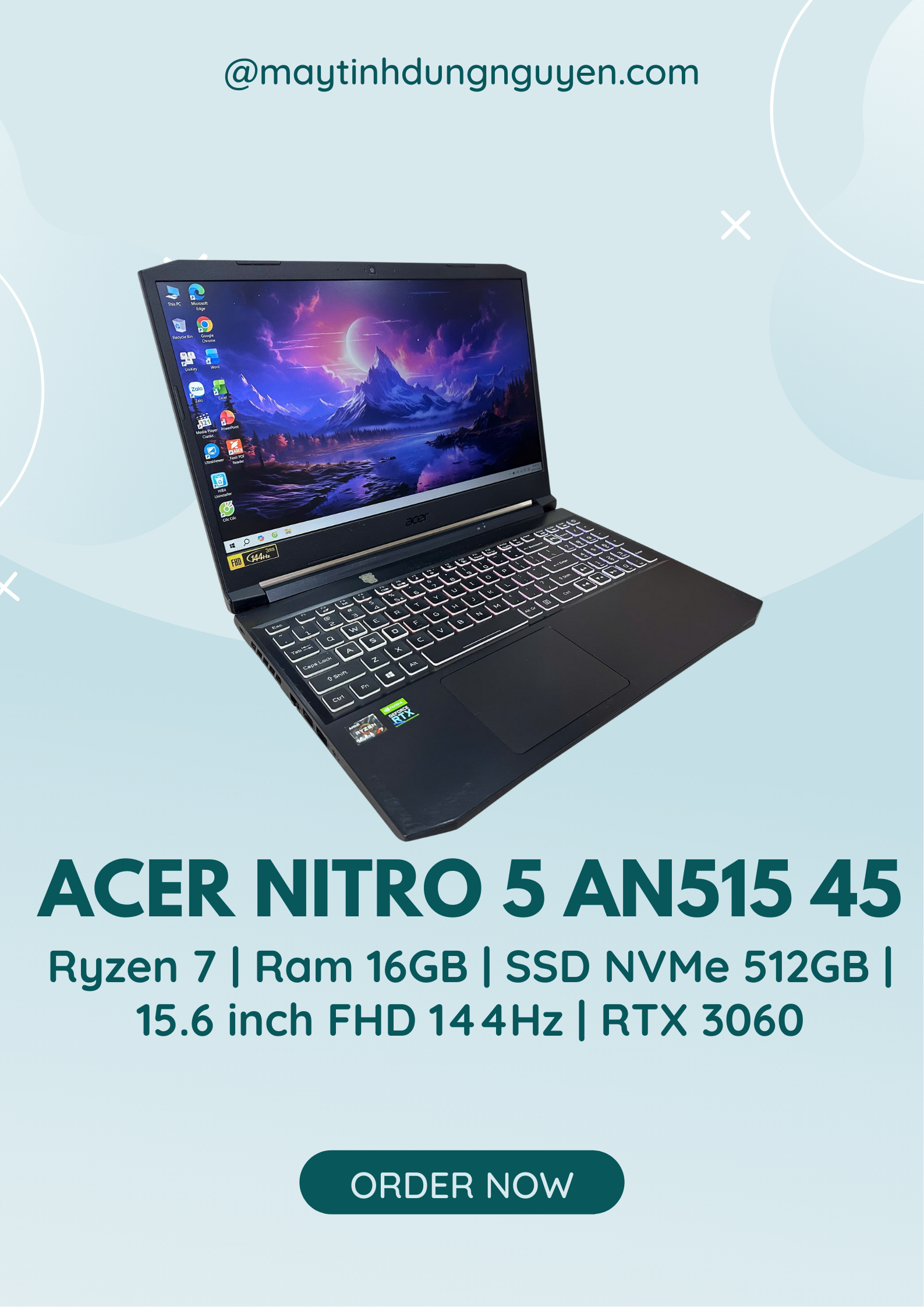 💻 ACER NITRO 5 AN515-45 – GAMING RTX 3060, MÀN 144HZ, HIỆU NĂNG KHỎE