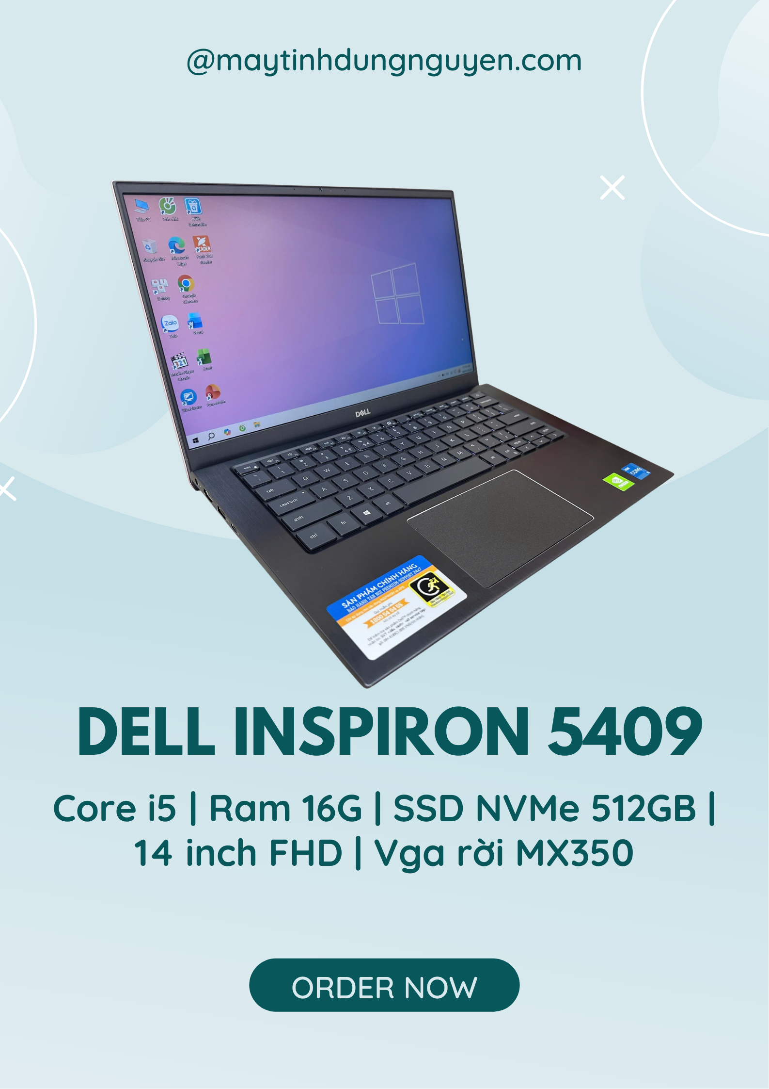 DELL INSPIRON 5409 | CORE I5 – 1135G7 | RAM 16GB | SSD NVMe 512GB | 14 INCH FHD | CARD INTEL IRIS XE GRAPHICS | VGA RỜI MX350